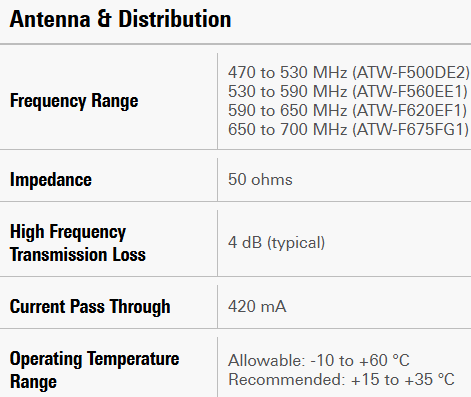 Each is fitted with industry-standard BNC-type connectors, requiring no power or user configuration and allowing easy connection to wireless microphone antennas to reduce noise and improve wireless system performance.