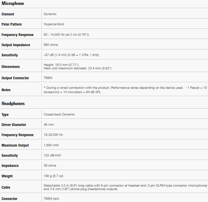 The headset comes with a 3.0 m (9.8') detachable cable (BPCB2) with a TA6F connector at the headset and, at the output end, a 3-pin XLRM-type connector for the microphone and a 6.3 mm (1/4") connector for the headphones. An unterminated version of the cable (BPCB3) is available separately. Also available: BPHS2S-UT Single-ear Broadcast Headset with unterminated BPCB3 cable (BPHS2S-UT, Stereo Broadcast Headset with hypercardioid dynamic microphone (BPHS2) and Stereo Broadcast Headset with cardioid condenser microphone (BPHS2C).