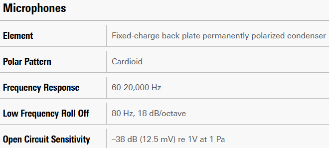 - Low-profile element provides uniform cardioid polar pattern with 120º acceptance angle