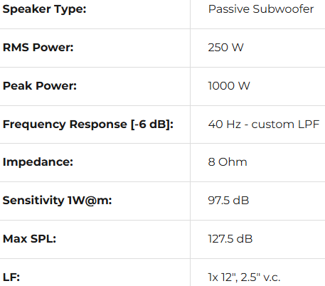 - FREQUENCY RESPONSE [-6dB]: 40 Hz - custom LPF