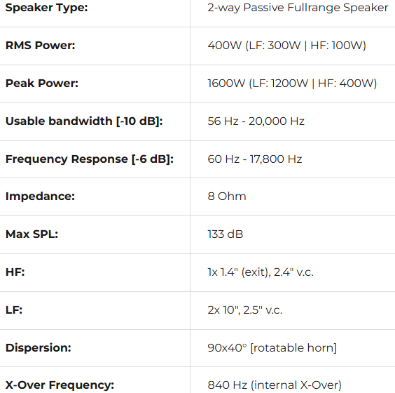 The symmetrical configuration with two 10'' woofers makes the top performing both in indoor and outdoor acoustic contexts; the IP55 certification ensures high resistance to different weather conditions and increase the system durability.
