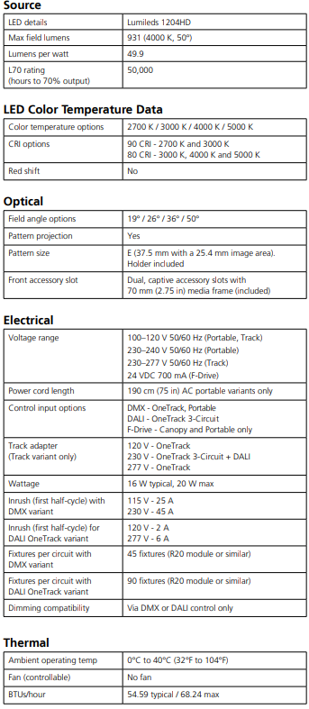 The Source Four Mini LED Plus features the same crisp optics, user-friendly functionality, and sleek look of the legendary Source Four and Source Four Mini fixture but with a much higher output than the standard Source Four Mini LED. This compact fixture is ideal for architectural and other small installation applications, including use with DMX, F-Drive, and DALI.