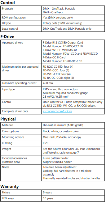 - Higher output than the traditional Source Four Mini LED—over 900 max field lumens