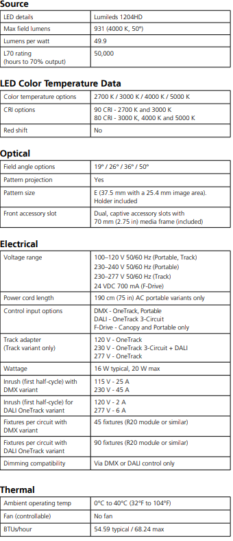 The Source Four Mini LED Plus features the same crisp optics, user-friendly functionality, and sleek look of the legendary Source Four and Source Four Mini fixture but with a much higher output than the standard Source Four Mini LED. This compact fixture is ideal for architectural and other small installation applications, including use with DMX, F-Drive, and DALI.