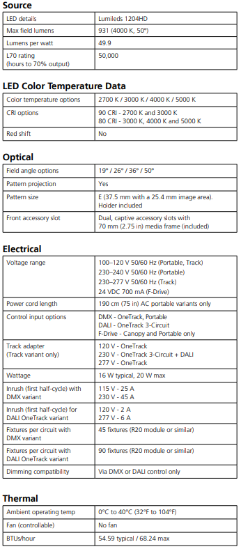 The Source Four Mini LED Plus features the same crisp optics, user-friendly functionality, and sleek look of the legendary Source Four and Source Four Mini fixture but with a much higher output than the standard Source Four Mini LED. This compact fixture is ideal for architectural and other small installation applications, including use with DMX, F-Drive, and DALI.