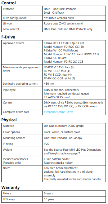 - Higher output than the traditional Source Four Mini LED—over 900 max field lumens