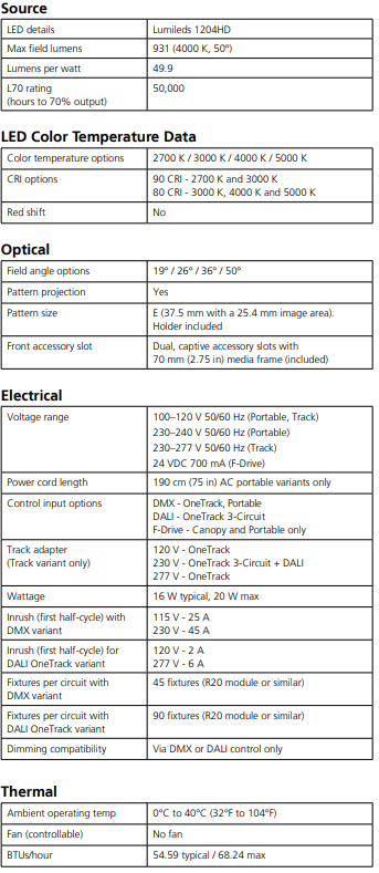 The Source Four Mini LED Plus features the same crisp optics, user-friendly functionality, and sleek look of the legendary Source Four and Source Four Mini fixture but with a much higher output than the standard Source Four Mini LED. This compact fixture is ideal for architectural and other small installation applications, including use with DMX, F-Drive, and DALI.