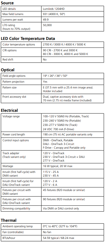 - Higher output than the traditional Source Four Mini LED—over 900 max field lumens