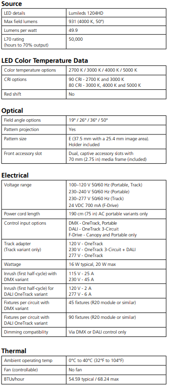The Source Four Mini LED Plus features the same crisp optics, user-friendly functionality, and sleek look of the legendary Source Four and Source Four Mini fixture but with a much higher output than the standard Source Four Mini LED. This compact fixture is ideal for architectural and other small installation applications, including use with DMX, F-Drive, and DALI.