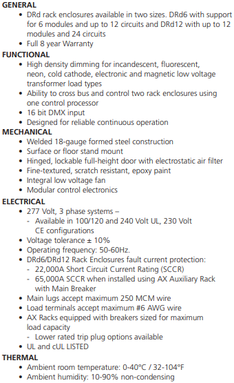 ETC DRd6-12-277 240-277V Rack Enclosure