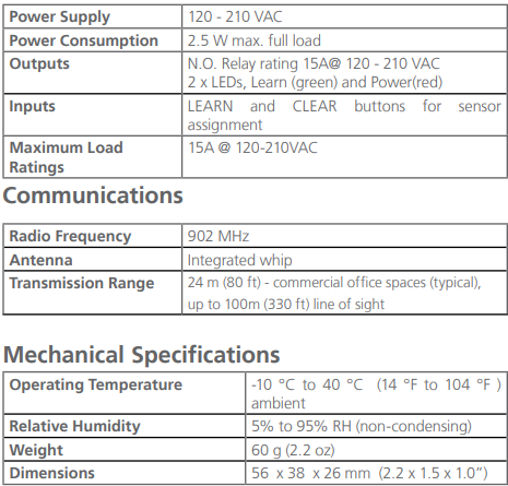 - Reliable radio reception range of 24 m (80 ft) - commercial office spaces (typical), up to 100m (330 ft) line of sight