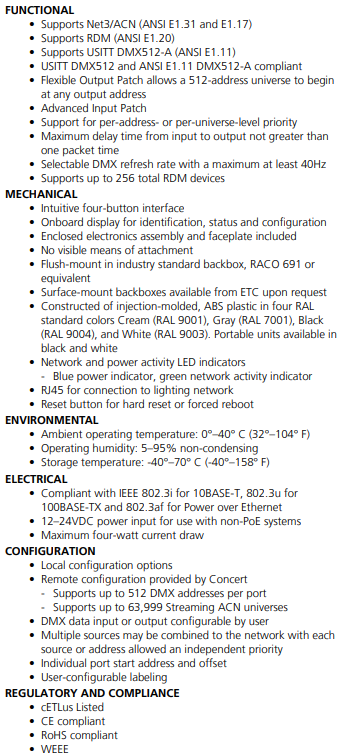 - Distributes DMX and RDM data to any input/output device over Ethernet