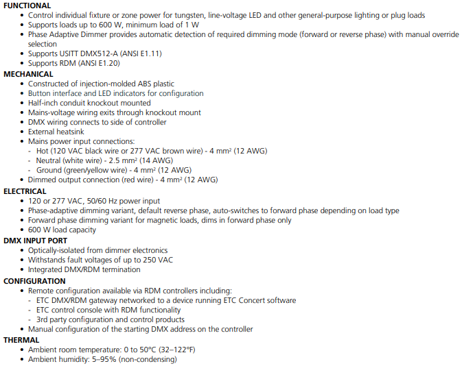 ETC UFD-277-MLV UFD-MLV 600W 277V MLV DMX Dimmer