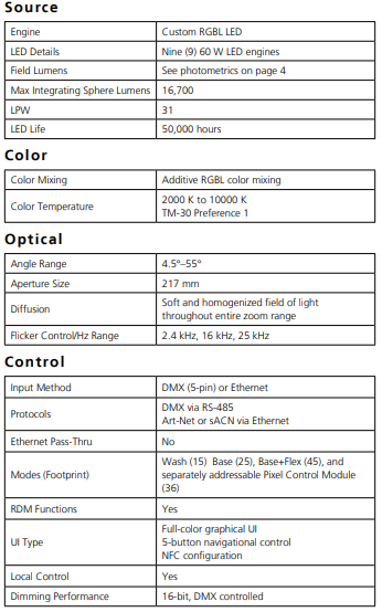 - Additive LED, RGBL, color mixing system for powerful saturated colors and tunable white control