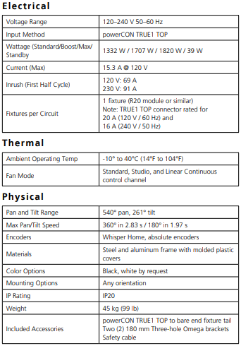 - Optional RigPOV camera kit with remote zoom and focus provides livestream NDI feed from the fixture’s perspective