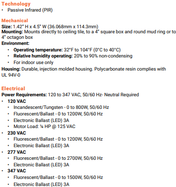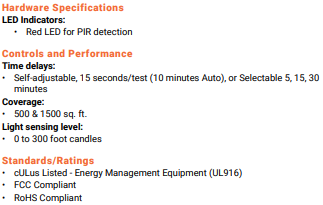 - Products tested to NEMA WD 7 - 2011 Occupancy Motion Sensors Standard