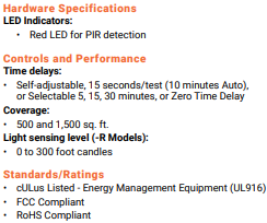 - Products tested to NEMA WD 7 - 2011 Occupancy Motion Sensors Standard