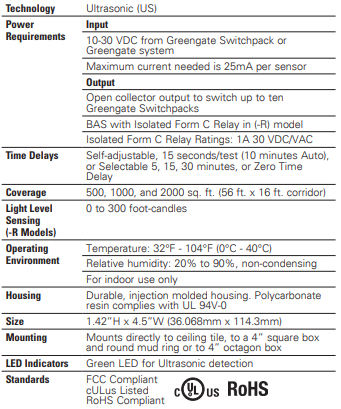 The MicroSet Ultrasonic Low Voltage Occupancy Sensing Ceiling Sensor is a motion sensing lighting control that is used for energy savings and convenience.