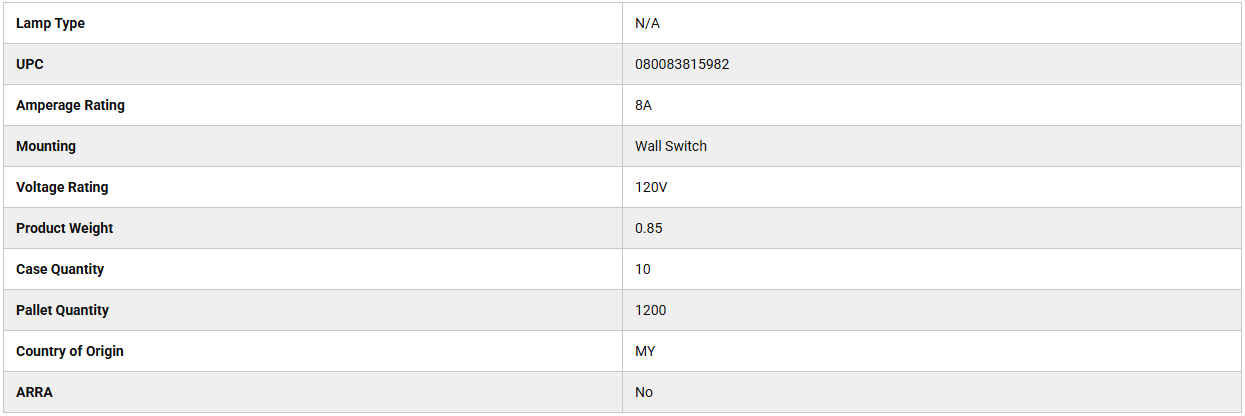 ILC VSW-D-010-G Wall Switch Sensor - Dual Tech - Vacancy - Line Voltage - 0-10V Dimming - Gray