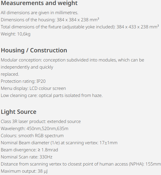 Wide range of vivid colors. smooth waves of beams, transforming shapes. the sensation that a greater number of fixtures are in action.