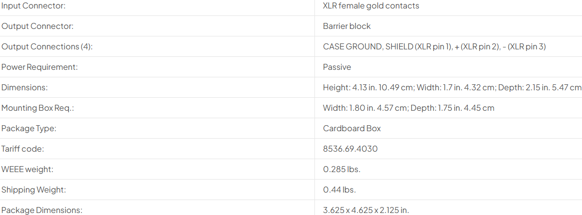 - XLR Input Connector with Gold Contacts