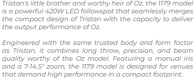 Robert Juliat FPR1179002 Berlioz 420W LED Cool White - 7/14.5° - Followspot