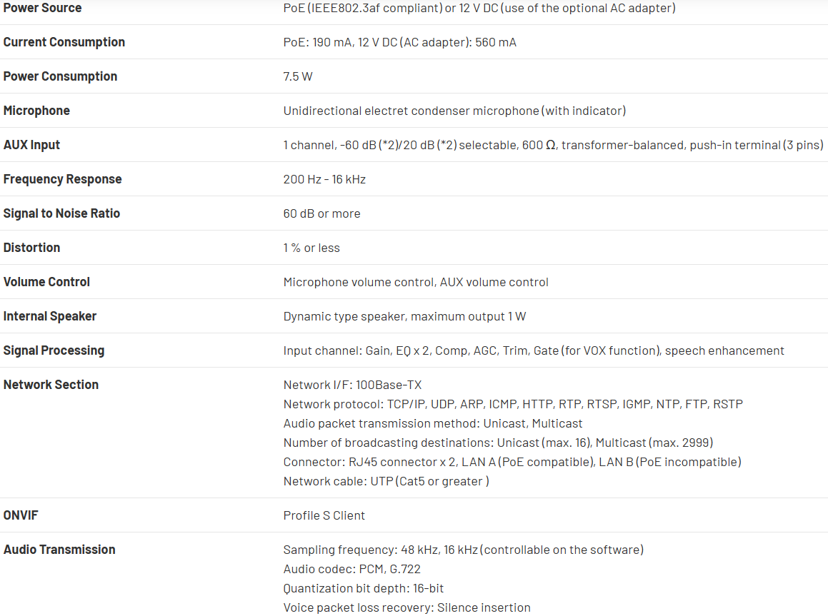 - PoE (IEEE802.3af compliant) or 12 V DC power