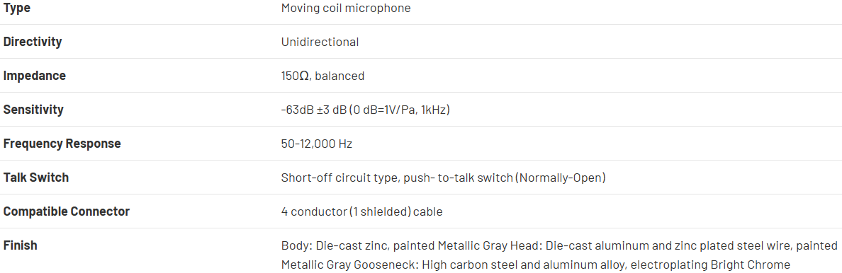 The DM-518-AM is a gooseneck paging microphone with push-to-talk switch and remote control output. The microphone body is solidly constructed of metal die-cast and designed to reduce switching and handling noise.