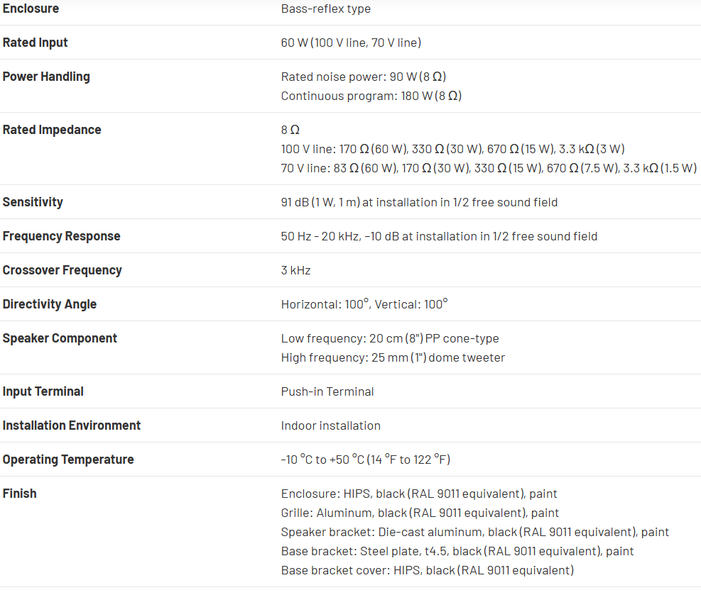F-08BT is a 2-way surface-mount speaker system designed to deliver high-quality audio for a variety of applications. This versatility makes it ideal for foreground or background music playback, as well as public address announcements. The F-08BT boasts a sleek aesthetic that seamlessly integrates with walls and ceilings hardware incorporates a temporary hanging feature, allowing for easy and secure single-handed installation with effortless wiring and angle adjustments.