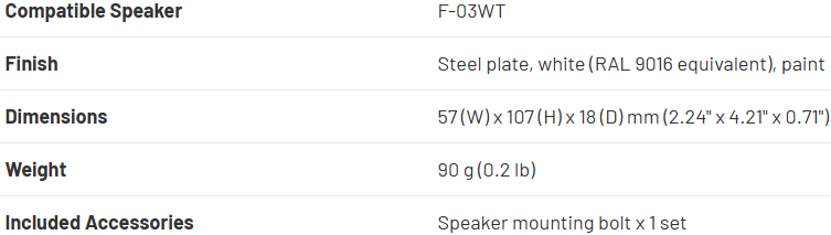 HY-F03W is a mounting bracket accessory designed for installation of F-03 series speaker systems using optional mounting hardware.