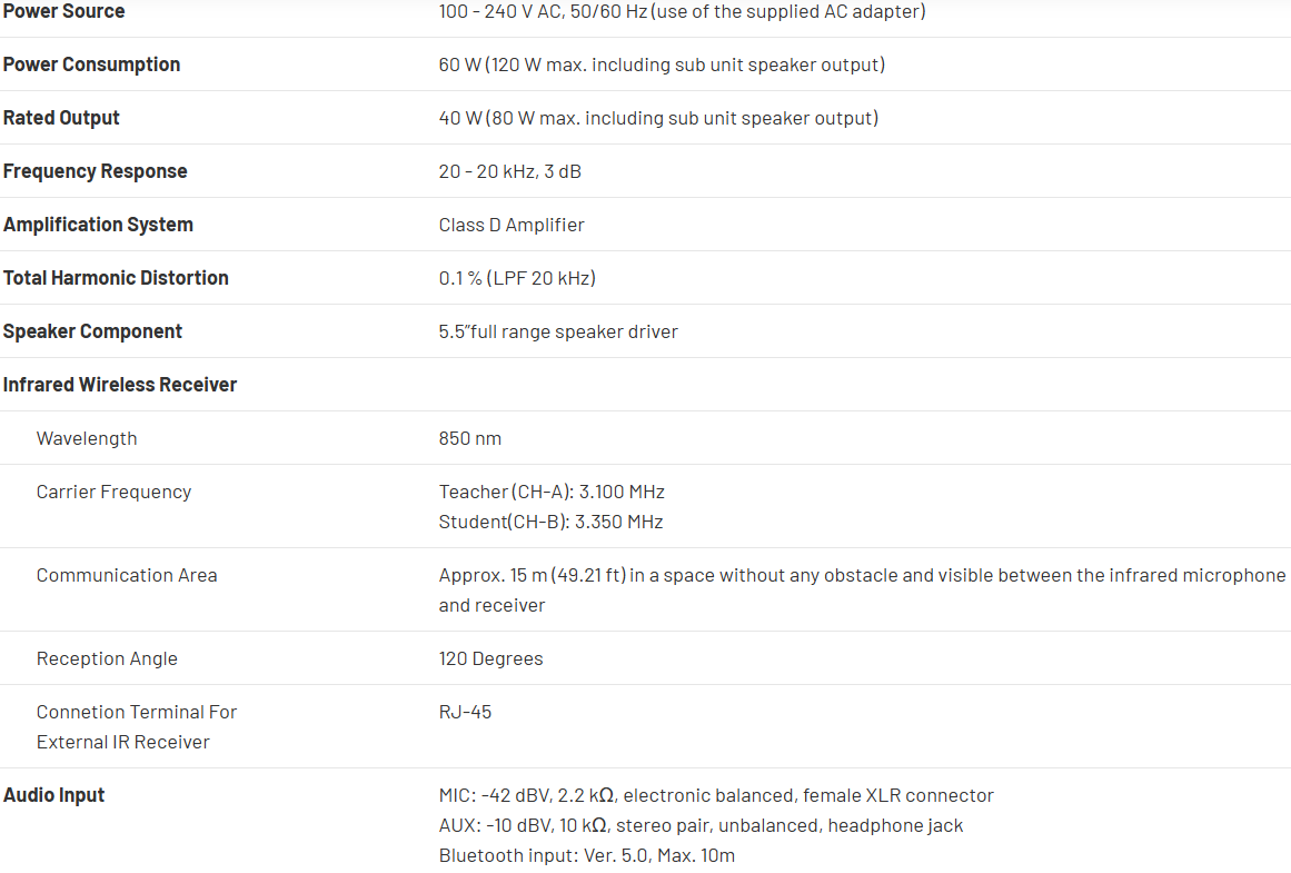 The IR-842PMU is a compact, portable infrared classroom soundfield system, designed for use in conjunction with TOA's IR-200M (hand-held), IR-300 (hands-free), or IR-310 (hands-free) infrared wireless microphones, featuring high sensitivity and clear sound.